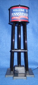 LIGHTED WATER TOWER WELCOME TO PENNSYLVANIA O GAUGE. COMES COMPLETELY ASSEMBLED AND READY TO USE.